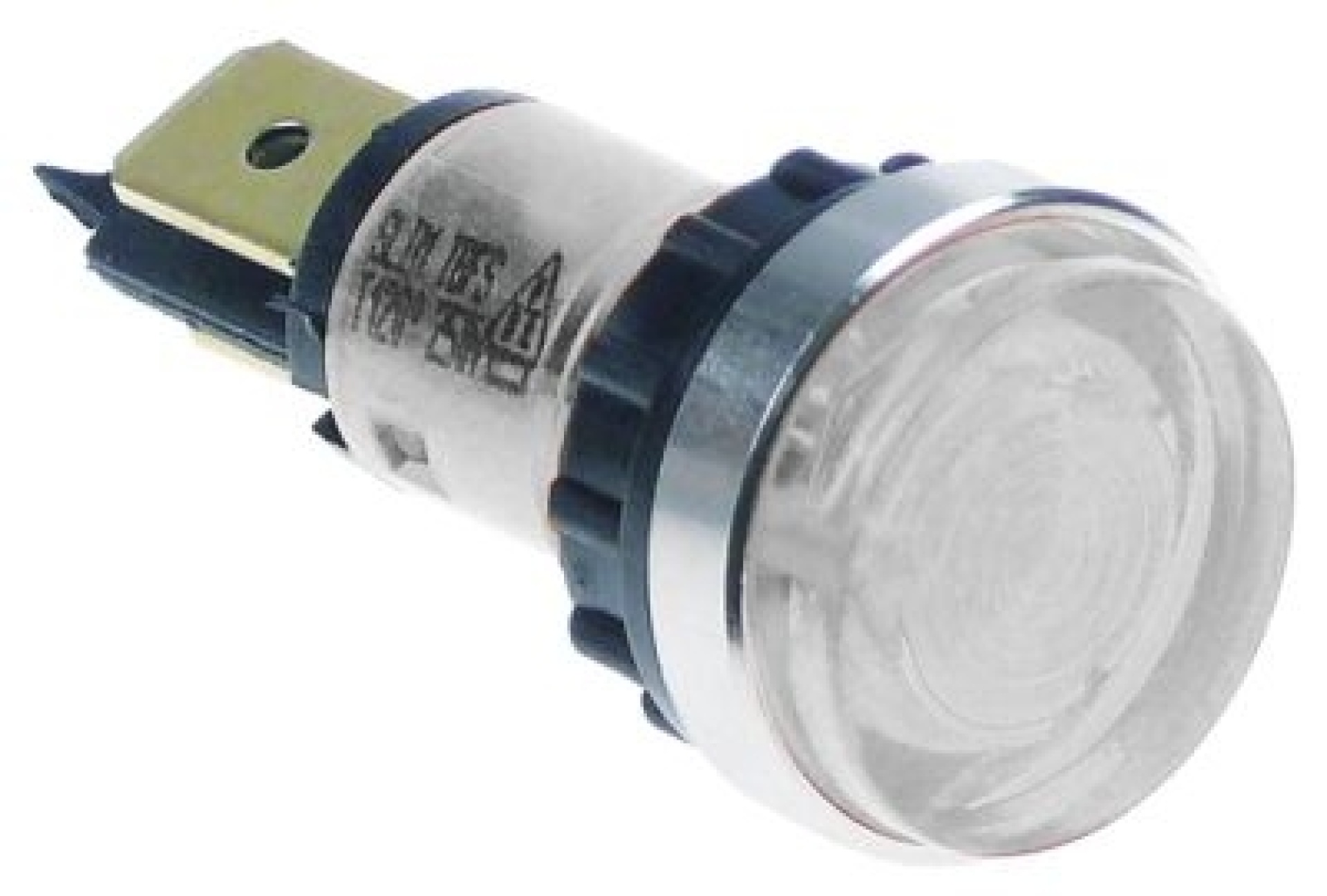 Kontrolka ø 12mm 230V čiré přípojka Faston samec 6,3 mm