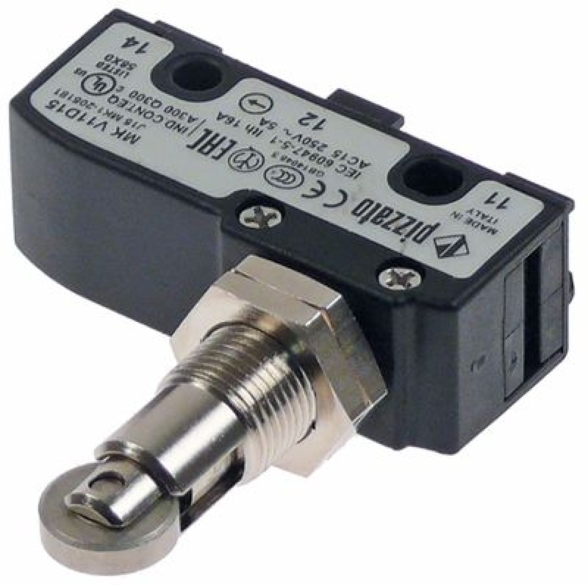 Mikrospínač ativovaný válcem 250V 16A 1CO přípojka šroub závit M12x1