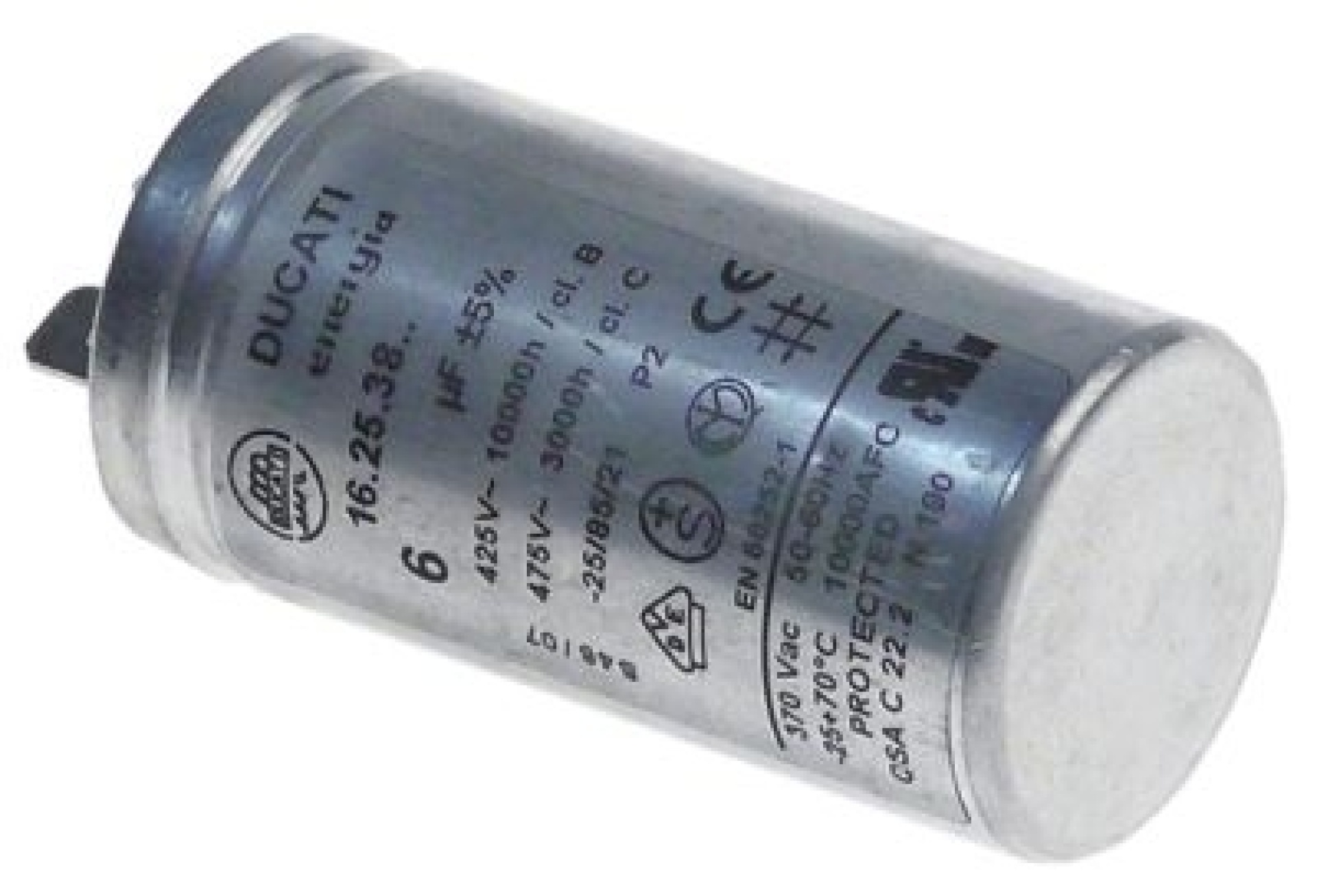 Provozní kondenzátor 425/475V kov přípojka Faston samec 6,3 mm ø 31mm L 60mm