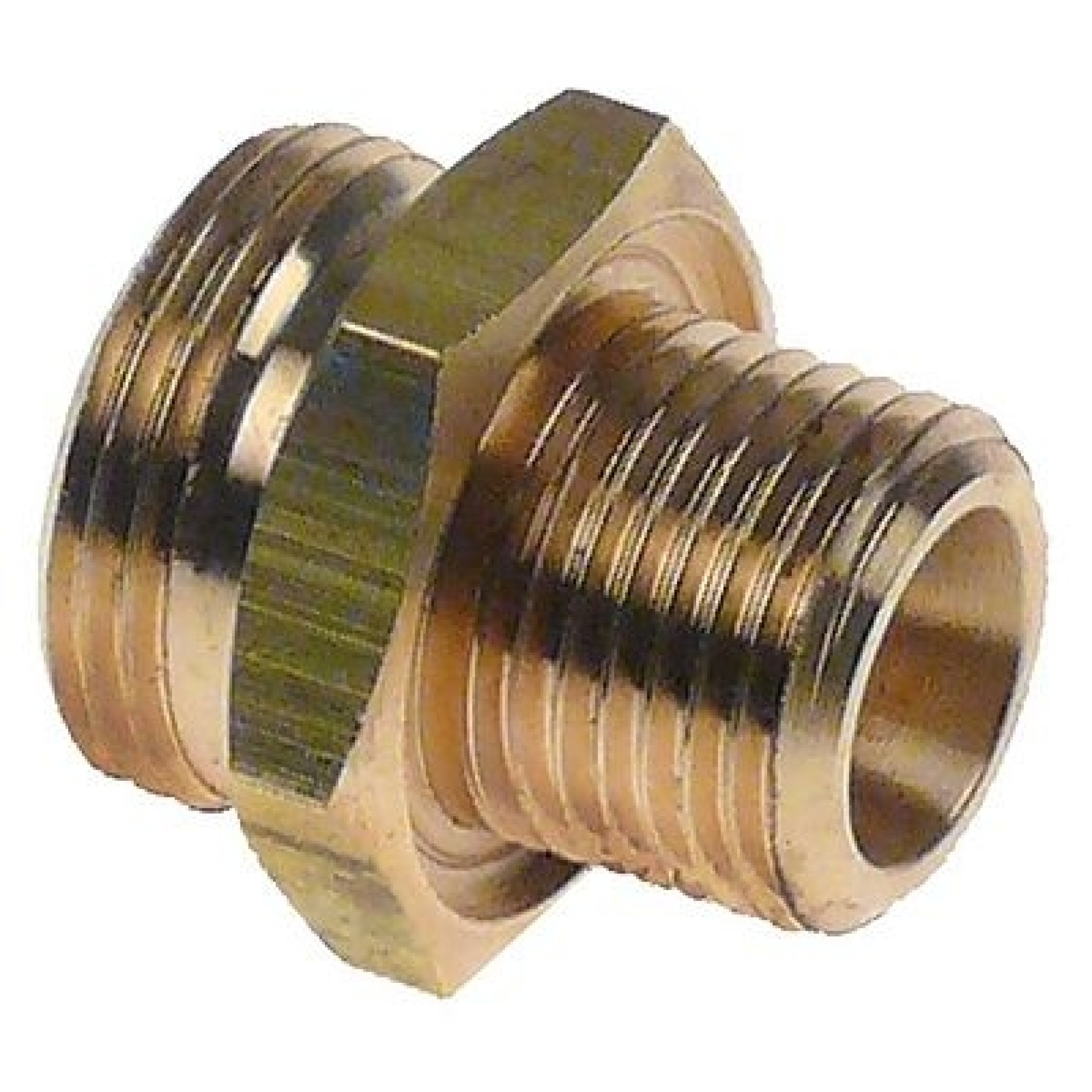 Šroubové spojení mosaz L 32mm T1: 3/4″ T2: 1/2″ pro průtokové ohřívače Množství 1 ks